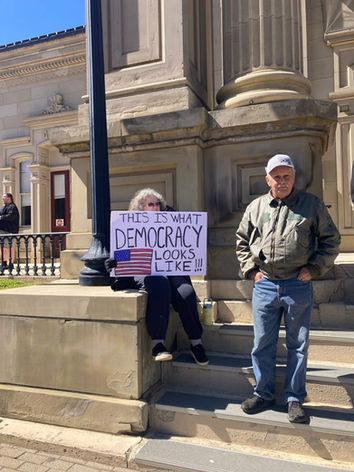 Bob Ford came out to play revolutionary and patriotic folk music and he never disappoints. We also had Lisa Parker, former chair of Jackson County Democratic party, former Army Reserve Officer, wife and mother of Combat Veterans and daughter and sister of Army Veterans and Kelly Nedrow, a Pike County beef farmer, member and staff of the American Federation of Teachers National union under Randi Weingarten and is a independent voter, one of our volunteers too to come out and speak to us. We couldn't be more appreciative of these folks to be there and share what we need to hear.